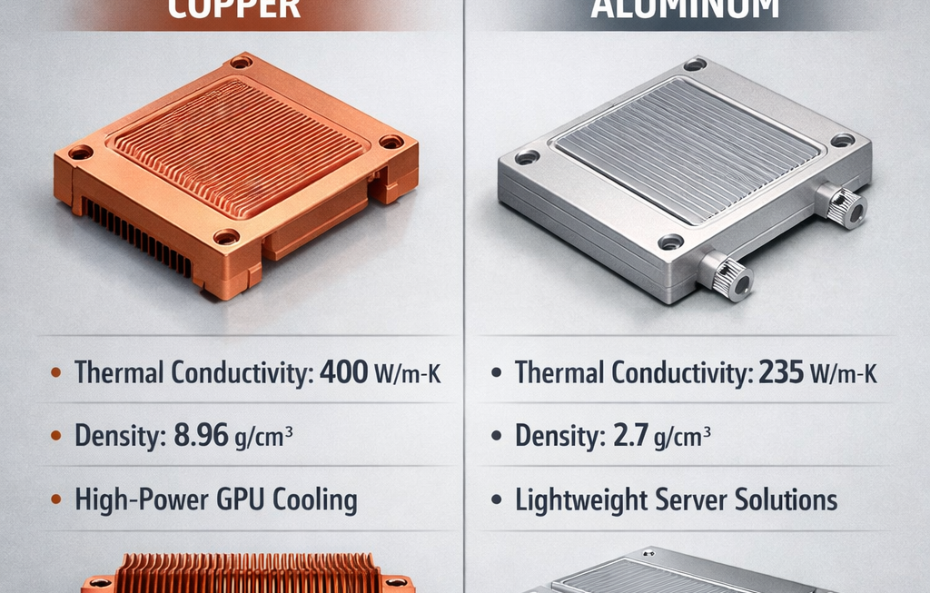 In modern high-density AI servers, GPUs often exceed 1000W power consumption. Choosing the right thermal management material directly impacts server stability, performance, and lifespan. Aluminum and copper are the most commonly used materials, but they differ significantly in thermal performance, cost, and manufacturability. This article compares aluminum and copper from the perspective of thermal conductivity, weight, cost, and structural integration in AI server designs.